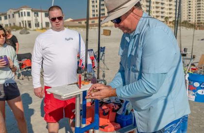 A frequent tournament winner and fishing club speaker, his passion is teaching surf fishing. His popular guide service specializes in surf fishing from Fernandina south to Daytona.